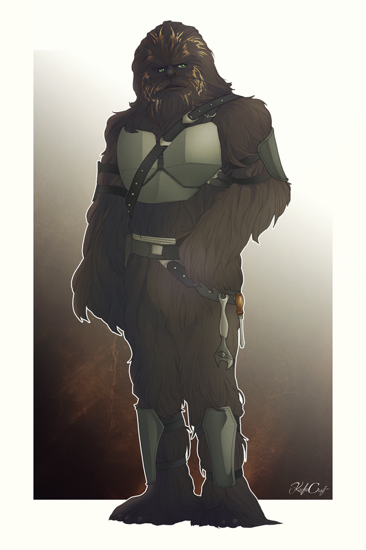 While a tall and wide-shouldered Wookiee, Rayjax moves with elegant grace, well aware of his size and its often intimidating nature.
