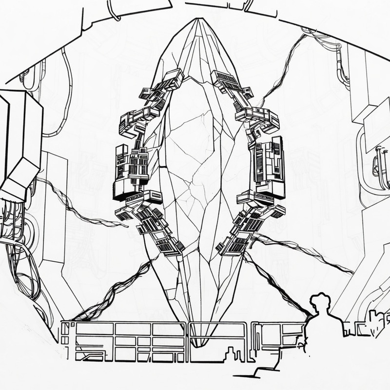 The World Seed—an ancient and unnatural construct of immense power—has started to awaken. Hairline fractures of energy spread across its faceted surface, pulsing with a light that does not belong to this galaxy. Containment systems strain to hold it in place as arcs of energy lash out, bridging the gap between machine and crystal. The chamber trembles under the pressure of something building, something inevitable. You must color this provided line art of the seed crystal. Your entry must include at least three colors.