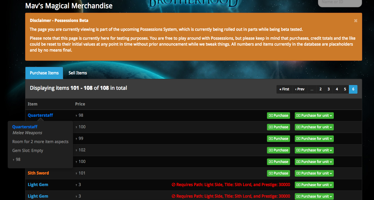Question though; on the Possession screens, it shows "Required; Light side, Title: Sith lord, and Prestige: 30000", is this intentional or still subject to tweaking? To me it looks like it's missing an "or" between light side and Sith lord. Now the requirements are a bit silly.